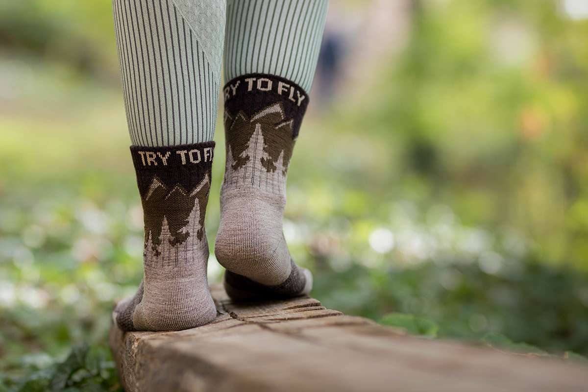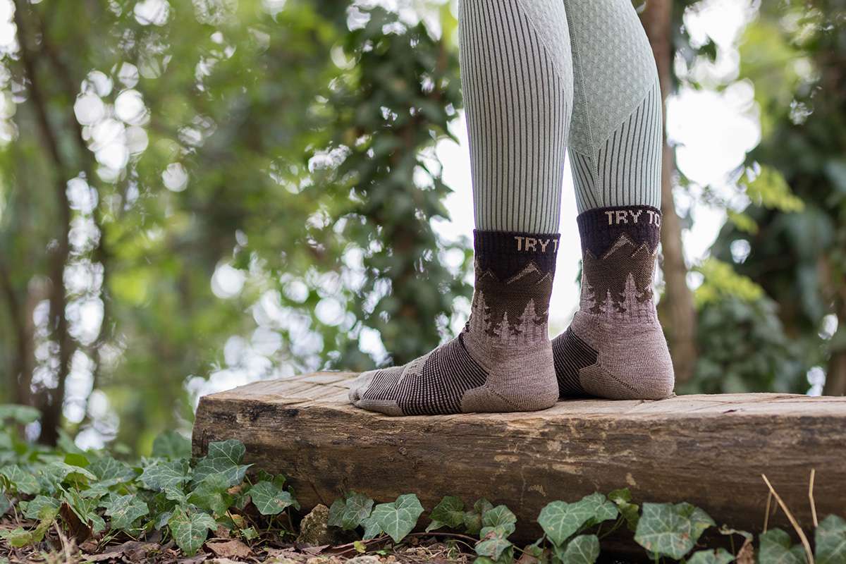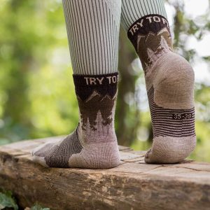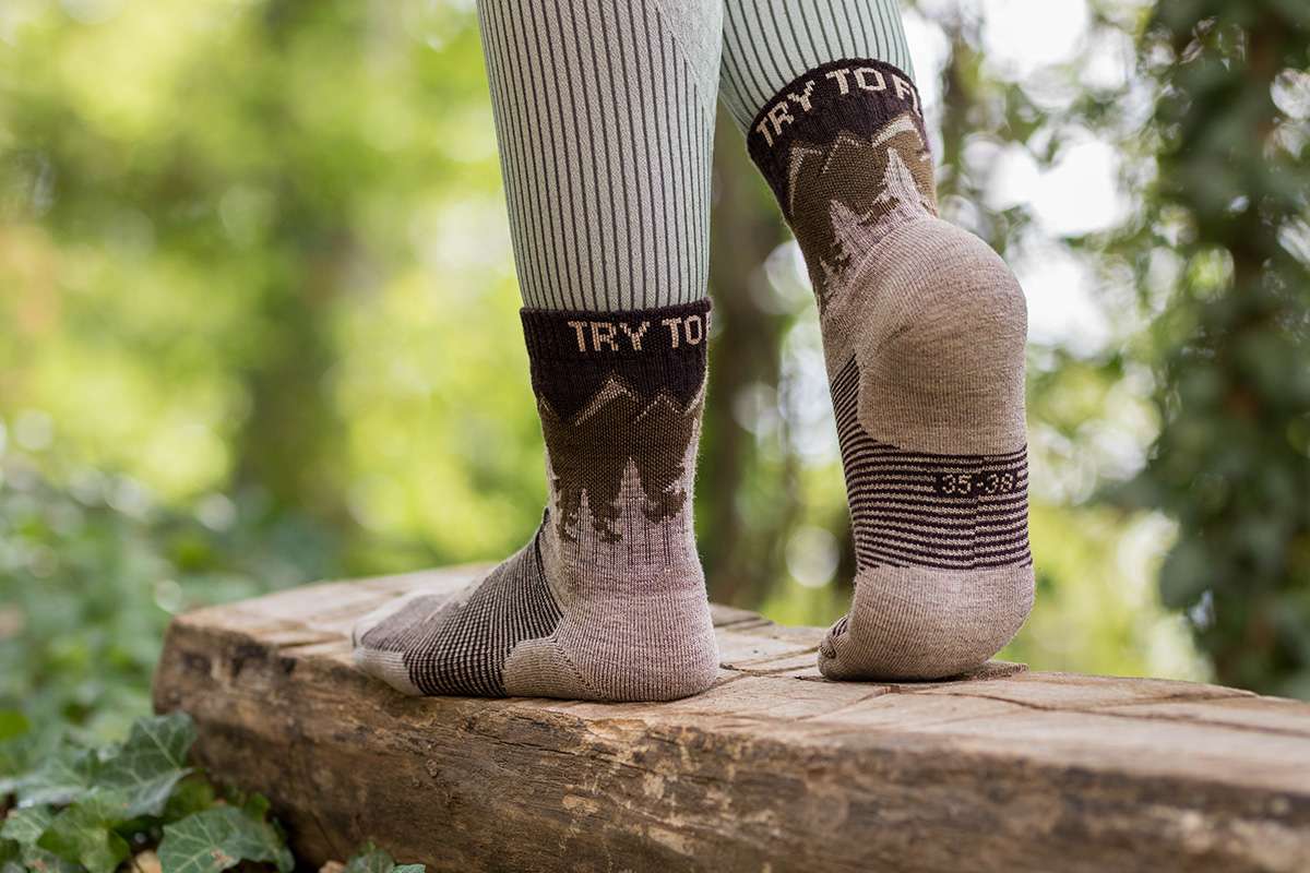 Merino vilnas pārgājienu zeķes ar kalnu āzi – bēšas