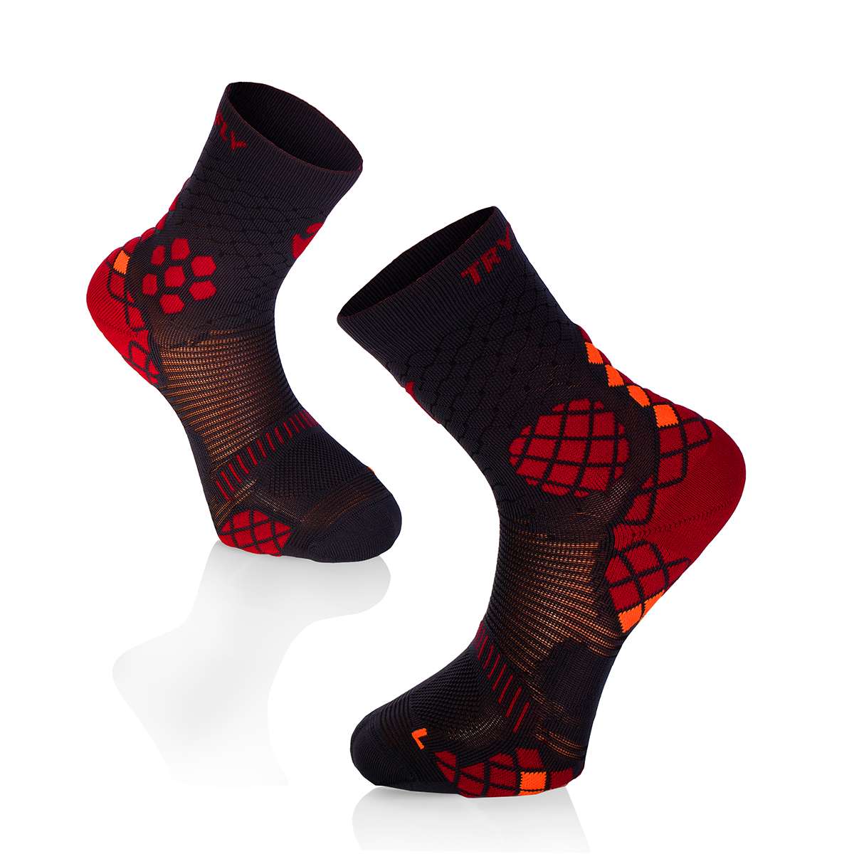 TRY TO FLY kompresijas zeķes ir neaizstājama ikviena sportista ekipējuma sastāvdaļa. Tās ir piemērotas maratoniem, riteņbraukšanai, skriešanai un citiem sporta veidiem, kā arī intensīviem treniņiem.